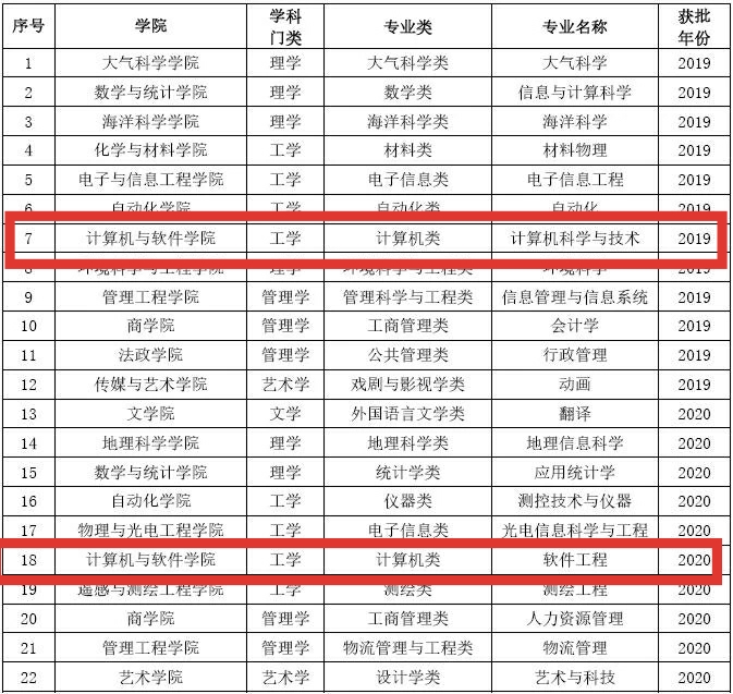 近日,教育部办公厅发布《关于公布2020年度国家级和省级一流本科专业建设点名单的通知》(教高厅函〔2021〕7号),计软院软件工程专业获批2020年度国家级一流本科专业建设点。加上此前已入选2019年度国家级一流本科专业建设点的计算机科学与技术专业,至此,计软院共有2个专业入选国家级一流本科专业建设点。