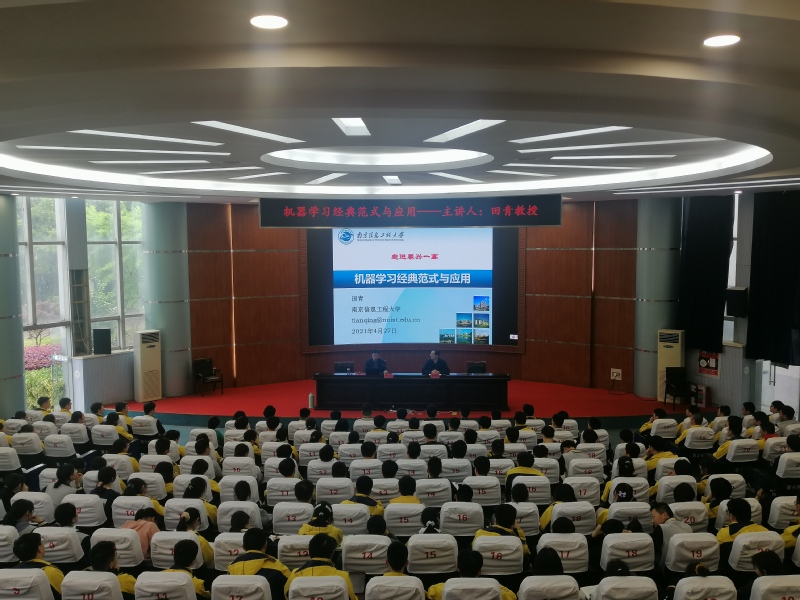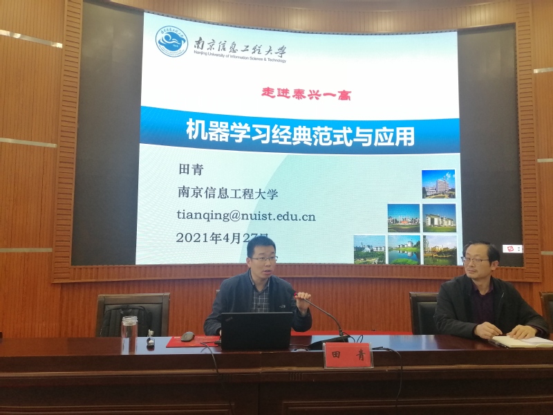 在与泰兴一高的优秀生源基地签约授牌仪式结束后,计软院软件工程系田青副教授面向师生开展了题为“机器学习经典范式与应用”的科普讲座。讲座中,田青基于信息处理智能化时代特征和人工智能技术的应用前景,详尽介绍了机器学习中的监督学习、半监督学习和无监督学习等几类学习范式,展示了机器学习的经典应用和在人脸属性估计、跨域适应等方面的部分研究成果。他的精彩发言引得了现场师生的阵阵掌声,在之后的提问互动环节,与会同学纷纷表示,这次讲座使他们受益匪浅,进一步激发了他们的学习动力和学习热情。