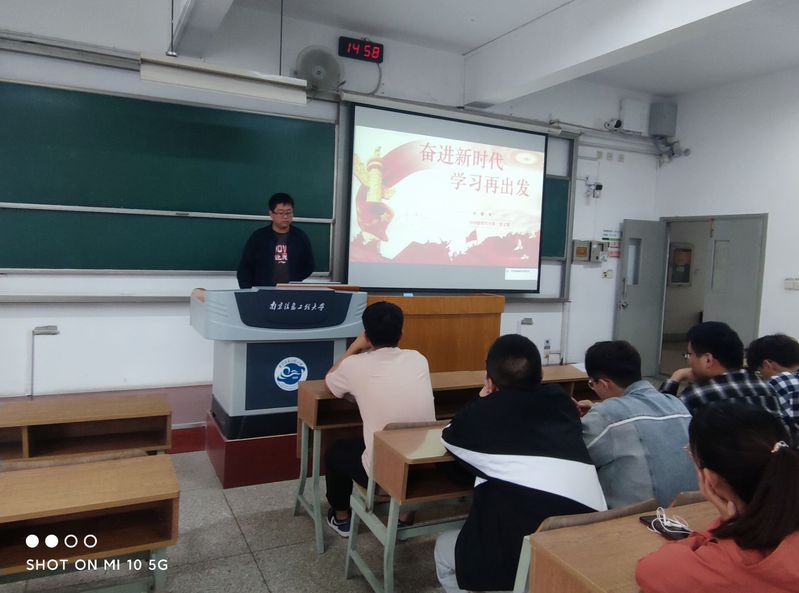 支部入党积极分子曹小玲同学、党员王孟大同学以PPT的形式,向同学们传达了习近平总书记在清华大学考察时的重要讲话精神。曹小玲在分享中说道:“作为一名在校研究生,我们要刻苦钻研,尽己所能,为国家建设贡献青春力量!”王孟大表示:“作为一名计算机专业的研究生,总书记的重要讲话令我倍感鼓舞,今后一定加倍努力学习,刻苦钻研。”
