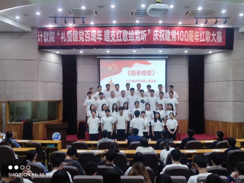 5月19日下午,计软院党委在长望楼报告厅举行“礼赞建党百周年,唱支红歌给党听”庆祝建党100周年红歌大赛,学院本科生、研究生共11个党支部参赛,支部《相亲相爱》合唱获得比赛特等奖。