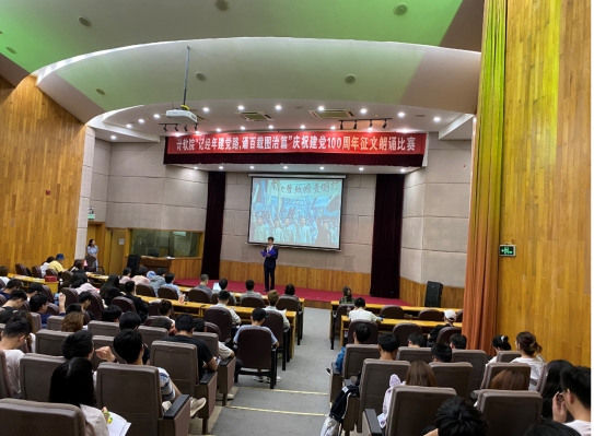 在前期的征文比赛中,各学生党支部成员积极参与,踊跃投稿,经评委组认真审阅,共有12件作品脱颖而出,进入此次朗诵比赛。6月2日下午,朗诵比赛在长望报告厅举行,此次比赛邀请了各学生党支部书记、副书记担任评委。