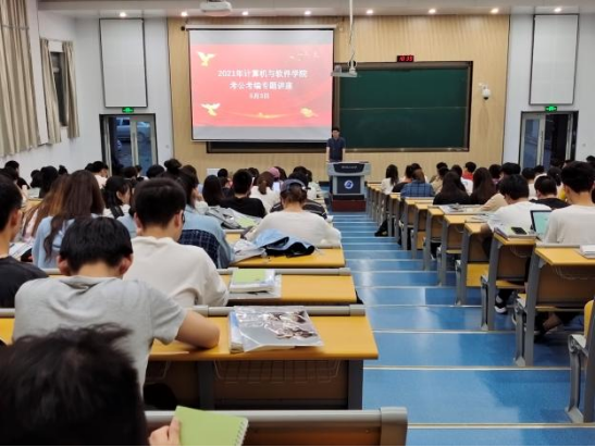 为进一步服务学生报考公务员和事业编制,加强同学们对考公考编的了解,增强备考水平,提升考试能力,促进学生高质量就业,计软院于6月3日晚邀请华图教育资深专家崔婕老师在北辰楼西阶教室举办考公考编的专题讲座。计软院党委副书记巨传友、辅导员崔敏出席了本次讲座。