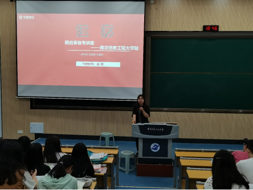 学院非常重视此次讲座,巨传友在讲座伊始表示,学院近几年成功上岸的学生越来越多,学院会在各个方面支持同学们进行考公考编,也会把考公考编应纳入教育教学和人才培养体系中,要贯彻到从新生入学教育到毕业生就业指导全流程的引导教育工作中。华图名师崔婕首先从历年招考及报考情况分析着手,通过一系列数据向同学们展示了考公考编的难度以及优势。紧接着,她通过对试卷结构的分析以及试题举例向同学们深入浅出地讲解了一些解题技巧,使同学们受益匪浅。最后,她就备考策略以及复习方法给大家提出很多实质性的建议,为大家在考公考编的道路上指明了方向。