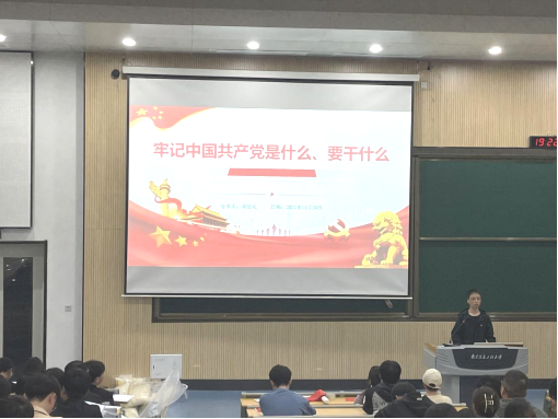 第三位分享的是第二党支部的周征礼。他结合新华社社论对“中国共产党是什么、要干什么”这个根本问题做了学习分享。党自成立以来,始终把为中国人民谋幸福、为中华民族谋复兴作为自己的初心使命,始终坚持共产主义理想和社会主义信念。初心易得,始终难守。在新时代,中国共产党更需进一步回答好“中国共产党是什么、要干什么”这个根本问题。最后他以新华门标语“伟大的中国共产党万岁”、“战无不胜的毛泽东思想万岁”收尾,希望在场每一位党员感党恩、跟党走,坚守初心、担当使命。