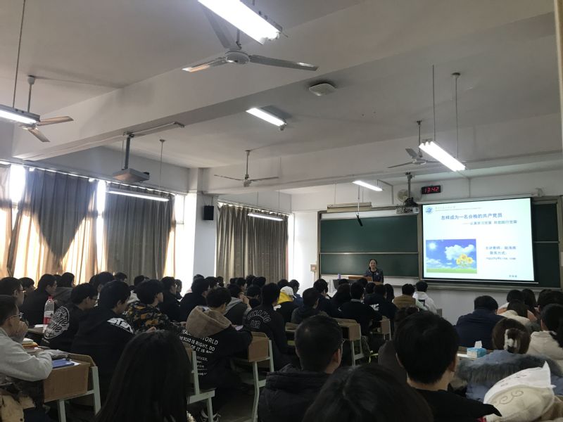 为加强学生党建工作,引导学生深入学习中国共产党章程,进一步提升学生的政治素养,11月24日下午,计算机学院在文德楼S604教室开展了以“怎样成为一名合格的共产党员——认真学习党章,自觉践行党章”为主题的中级党校培训活动,主讲人为马克思主义学院赵海燕教授,共有百余名入党积极分子参加了此次党课学习。本次党课由学院党委书记关辉主持。