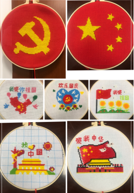 “绣党旗,绣国旗”活动的核心是知党爱党、爱国为国,通过一针一线的精心绣制过程,激发青年学子爱党爱国的赤子情怀。从绣品的选择,到绣品的组织绣制,同学们都积极参与。从第一针不知如何下手,到渐入佳境得心应手,大家围坐一团体会了其中的乐趣,用一针一线抒发了对党的无限忠诚和对祖国的无限热爱,把对党和祖国的热爱与真情化在针里融在线中。