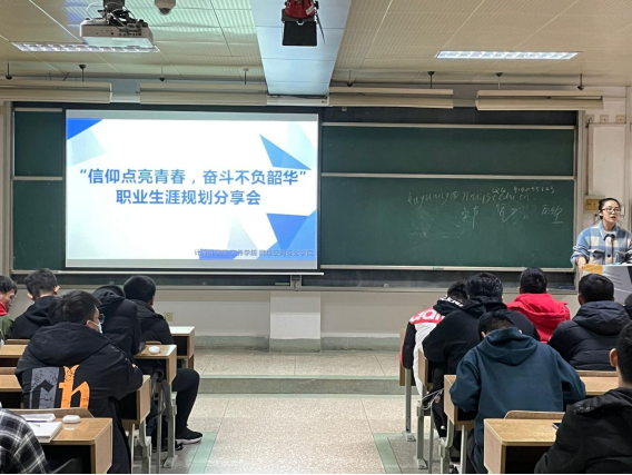 为进一步提升大学生的职业生涯规划能力,引导学生进行科学的学业和职业生涯规划,提高创新创业积极性,增强大学生的综合素质和能力,11月30日晚,计算机学院在明德楼N215、N315举办了以“信仰点亮青春,奋斗不负韶华”为主题的大学生职业生涯分享会,计算机学院近六百名新生参加此分享会,活动由辅导员王韵璐主持。