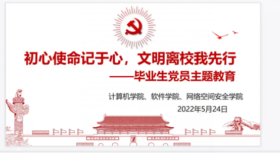 为引导广大毕业生党员坚定信念、情系母校、担当作为,充分发挥毕业生党员在文明离校中的先锋模范作用,激励毕业生党员以更加饱满的精神面貌奔赴人生新的征程,5月24日下午,计算机学院开展了“初心使命记于心,文明离校我先行”2022届毕业生党员线上主题教育活动,各学生党支部书记、全体毕业生党员参加了活动,此次活动由辅导员姚小芹主持。