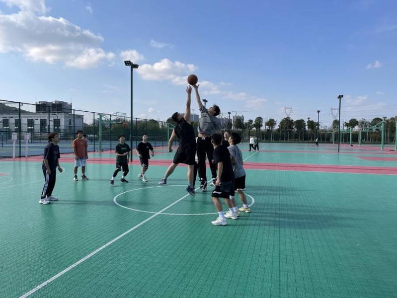 本次比赛秉承“友谊第一,比赛第二”的原则,将球员们分为甲乙两队,整场比赛分为三个小节。随着裁判一声哨响,比赛正式开始。双方球员都热情高涨,全力以赴,展示出了最好的青春之姿。比赛一开始乙队率先找到状态,通过连续的快攻和投篮,展示出了优秀的团队配合,第二节结束就取得了12分的领先优势。但是甲队也没有放弃,通过积极沟通,制定战术,第三节一上来就连续得分,一步步将分差缩小,比分一度进入焦灼局势。整场比赛中球员们各显身手,通过出色的配合,一次次的精彩快攻、一幕幕的顽强对抗赢得了场内外的阵阵喝彩。