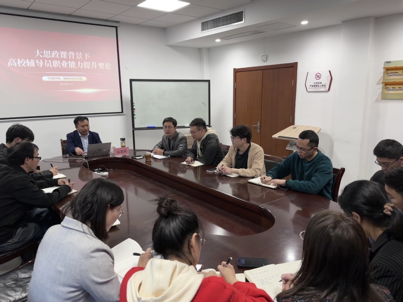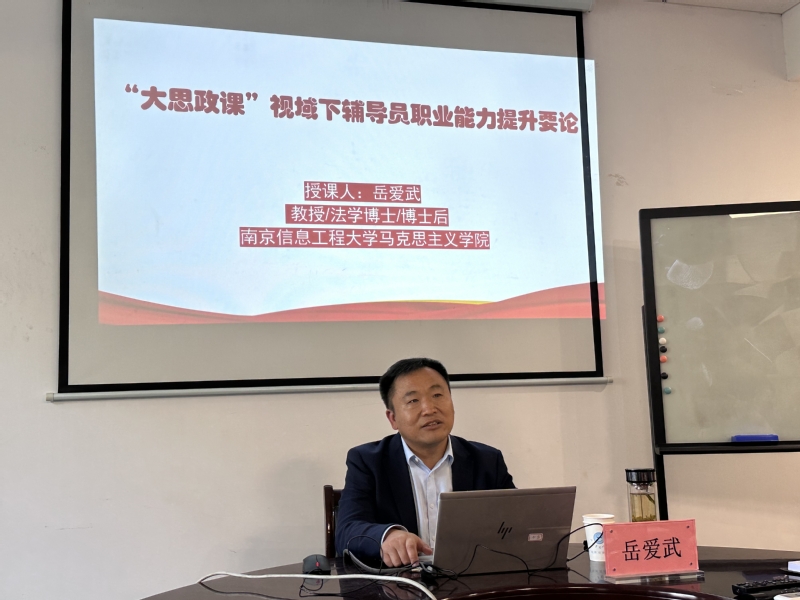 11月10日下午,我校马克思主义学院岳爱武教授应邀为计算机学院(网络空间安全学院)辅导员做题为《‘大思政课’视阈下辅导员职业能力提升要论》的专题讲座,讲座由学院党委副书记朱文镇主持,学院全体辅导员聆听了此次讲座。