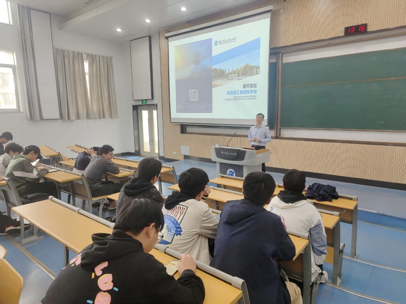 在东阶教室,许小龙为大家详细介绍了海康威视英才班的办学优势、科研竞赛优势。刘琦对该班的教学计划和课程教学大纲等方面进行交流,并重点讲解了合作企业和相关实践课程。廖灵芝为大家解读了加入英才班后的考研优势和就业前景。最后,崔萌萌对报名资格和报名条件进行了补充,并动员同学们积极报名。