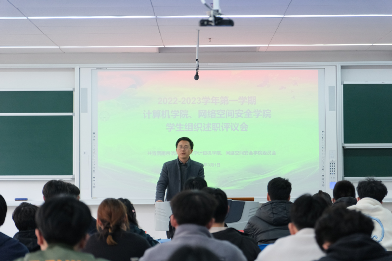 为落实学院学生组织述职评议制度,增强学生骨干的服务意识和服务水平,3月1日下午,计算机学院、网络空间安全学院在明德楼N404教室召开2023春学期学生组织述职评议会。学院党委副书记、副院长朱文镇,学办辅导员,学院学生组织主席团、部长团成员参加了本次评议会。会议由辅导员张乐涵主持。