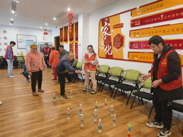 朱文镇和贲丽霞代表双方签订志愿服务合作协议,并为党员志愿者服务基地揭牌。揭牌仪式结束后,在服务中心举办了老年人趣味运动会,设置了掷沙包、保龄球、夹玻璃球、套圈等比赛项目,简单又安全。活动中,志愿者给大家详细介绍了比赛规则,接着,志愿者带领老人们来到各运动项目前,比赛分项目有秩序地进行着,十多位参赛老人精神抖擞,神采飞扬,以饱满的热情参与到各类运动项目中,充分展现了昂扬向上的精神风貌,整个场面妙趣横生,不时传来老人们的欢声笑语与热烈掌声。