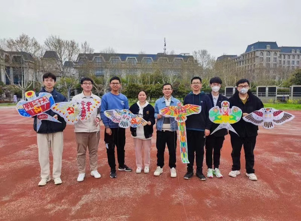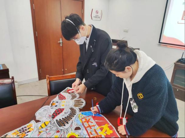 学习分享结束后,第五学生党支部于操场开展了“青春向党,放飞理想”的主题党日活动。支部成员通过绘制图案、制作样板风筝等形式,用绘画、文字与行动表达对党和国家的热爱,并将自己的理想与对党的祝福写在风筝上,乘风放飞,展现了新时代新青年昂扬向上的精神面貌,弘扬青春正能量。
