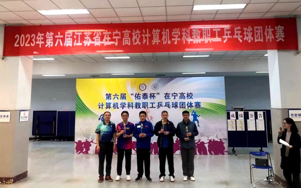 近日,第六届在宁高校计算机学科教职工乒乓球团体赛在河海大学举行,我院教职工乒乓球队团结一心、奋勇拼搏,荣获第5名,这也是我院教职工参加该项赛事以来取得的最好成绩。