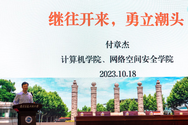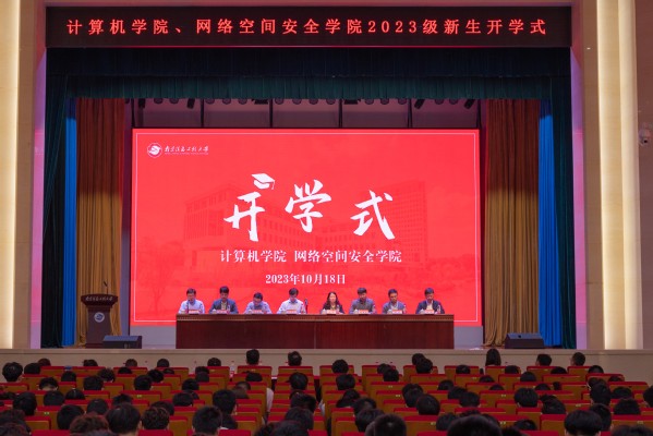 10月18日,我院2023级新生开学式在风云剧场举行。计算机学院执行院长、网络空间安全学院院长付章杰,院党委书记关辉,院党委副书记、副院长朱文镇,数字取证教育部工程研究中心副主任熊礼治,计算机学院院长助理孙玉宝,计算机科学与技术系主任孙乐,物联网工程系党支部书记李斌,校友代表曹燚,全体2023级新生辅导员、班主任及788名2023级本科生、研究生参加此次开学式。活动由朱文镇主持。