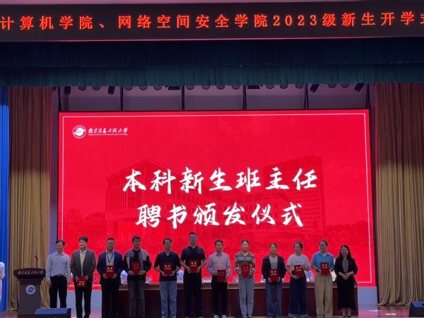 参会领导和嘉宾共同为2023级本科新生班主任、班导颁发聘书。