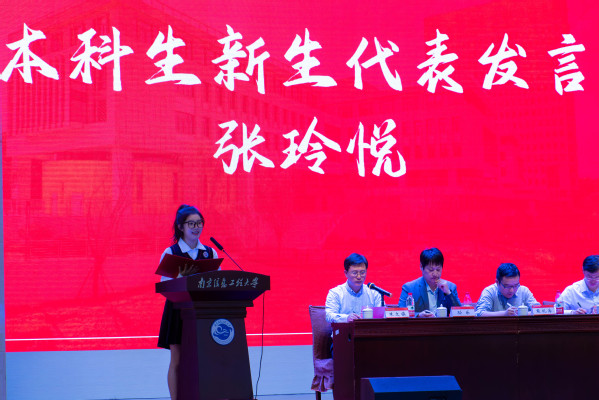 研究生新生代表季嘉豪和本科生新生代表张玲悦先后发言,他们表示将秉承南信大“艰苦朴素 勤奋好学 追求真理 自强不息”的校风,不断奋斗,努力成长为爱国奉献、追求卓越的新时代青年,为中华民族伟大复兴贡献来自南信大的青春力量。