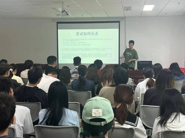21级同学认真聆听并记录重点,在互动环节中积极提问,学长学姐耐心解答,现场气氛热烈。同学们对考研择校策略、高效复习方法、心态调整以及面试技巧等多个维度有了更深的了解。