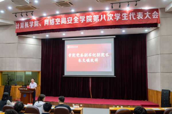 6月5日晚,计算机学院,网络空间安全学院第八次学生代表大会在长望楼报告厅顺利召开,来自全院各系的96名学生代表齐聚一堂。学院党委副书记、副院长朱文镇,分团委书记陆燕,学生办公室副主任张学会及全体本科生辅导员出席大会。