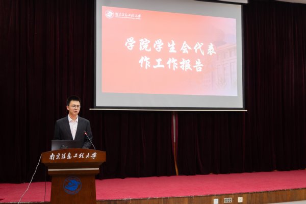随着庄严的国歌声响起,会议正式拉开帷幕。朱文镇发表热情洋溢的致辞,他回顾了院学生组织的发展历程,对上一届学生会的工作成果给予了高度评价,他鼓励同学们积极发挥代表作用,以此次大会为契机,为学院发展和更好服务同学建言献策。朱文镇对代表们提出三点希望,一是不断加强理论学习,提高政治觉悟和分辨能力;二是强化奉献担当,提高工作水平,全心全意为同学服务;三是做好表率,充分发挥朋辈引领作用,带动周围同学共同进步。最后,朱文镇预祝大会取得圆满成功。