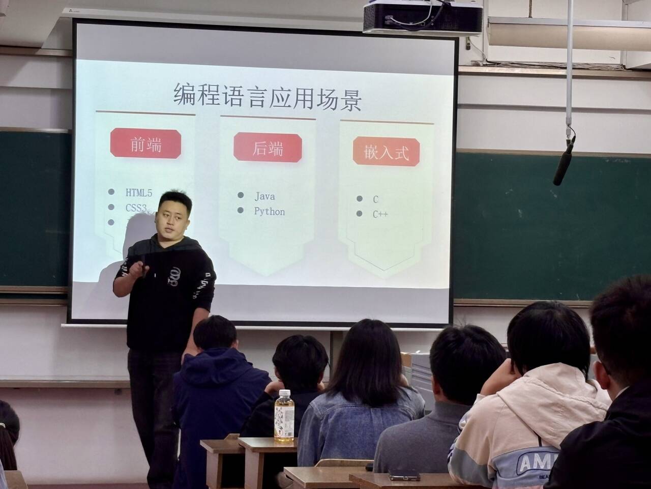 会上,朱文镇向同学们讲解了创新创业对个人发展、学科建设以及区域经济的复合价值。他指出,创新创业活动是锻炼个人能力的重要途径,鼓励同学们要学以致用,不断推进技术创新,积极参与创新创业比赛和各类学科竞赛,抓住一切机会,磨炼自身本领。