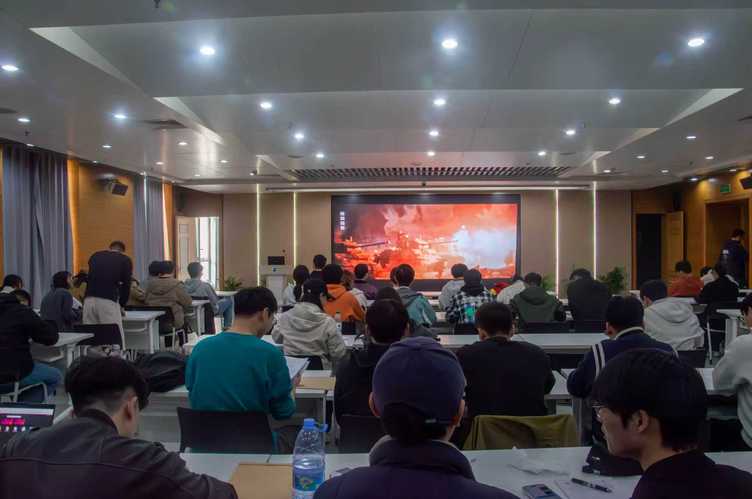 全体党员及入党积极分子首先集体观看爱国主义影片《志愿军:浴血和平》。影片展现了抗美援朝战争中“边打边谈”的艰辛历程,揭示了“弱国无外交,尊严在剑锋之上”的历史启示,激励党员铭记历史、勇担重任,在科技领域攻坚克难,筑牢国家安全屏障。
