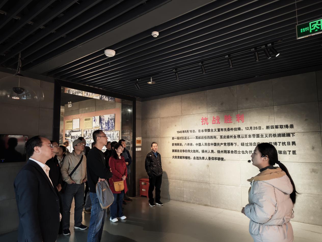在扬州革命烈士陵园,全体人员拾级而上,瞻仰革命烈士纪念碑,向长眠于此的英烈鞠躬默哀。面对鲜红的党旗,党员教师重温入党誓词,铿锵誓言回荡在苍松翠柏之间。随后,大家走进烈士事迹陈列馆,通过“辛亥风云”“星火燎原”“抗日烽火”“忠诚卫士”等展区,近距离感受百余位扬州籍革命先烈为民族独立、人民解放抛头颅、洒热血的壮丽人生。一幅幅泛黄照片、一封封诀别家书、一件件浸血遗物,让在场教师深受震撼,纷纷表示要把对党忠诚写进“代码”、把报国初心融入科研,用“硬核”技术支撑网络强国、数字中国建设。