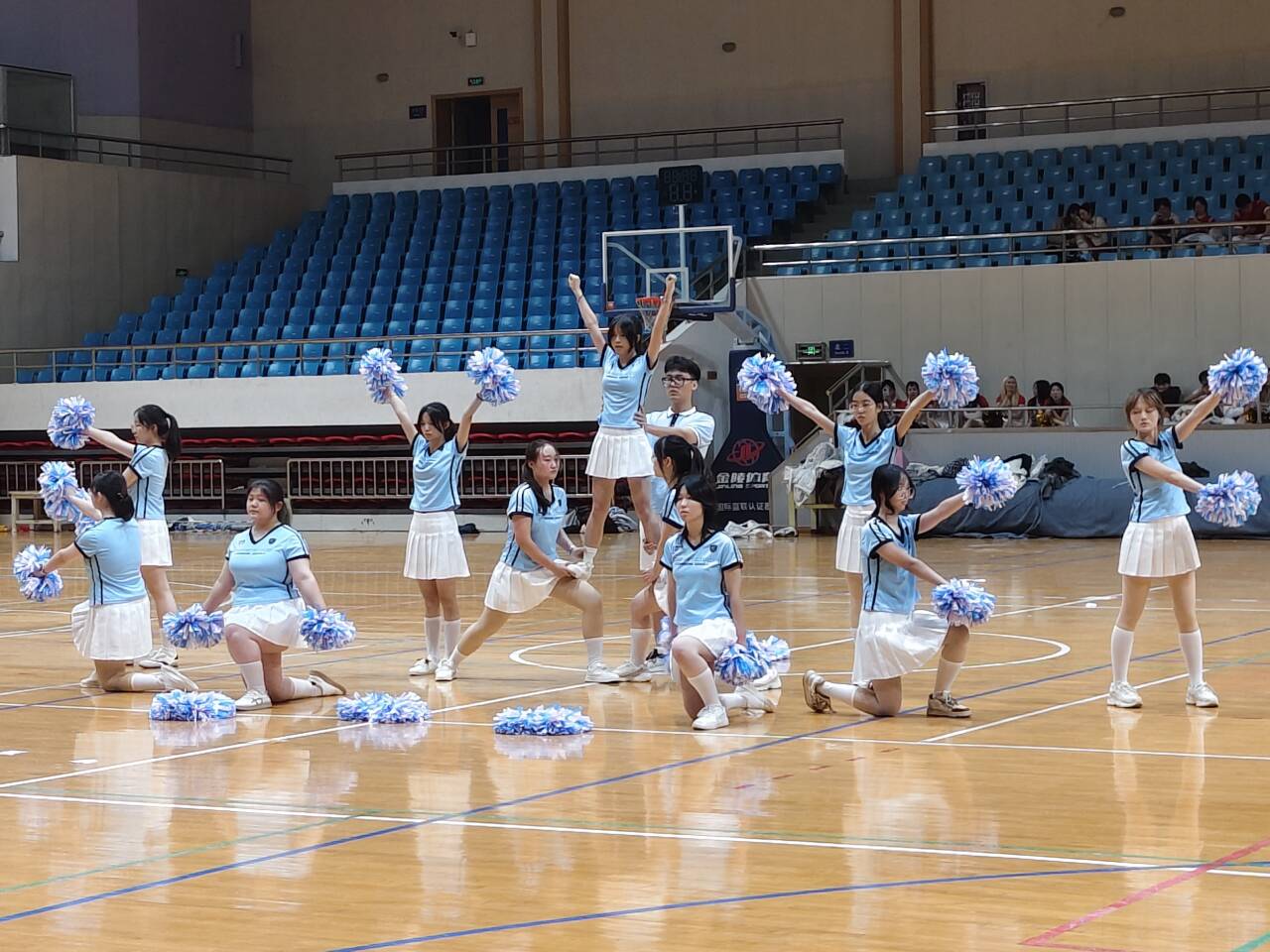 比赛过程中,队员们动作整齐划一,干净利落。一系列高难度动作在他们默契的配合下完美呈现,引得现场观众阵阵惊呼与掌声。从精心设计的队形变换,到每一个眼神传递出的自信与坚定,无不彰显着他们数月来刻苦训练的成果与对团队荣誉的执着追求。“计网计网,燃爆赛场,码力全开,势不可挡!”看台上观众们的呐喊声此起彼伏,手中的应援棒在观众席上格外醒目,声声助威与场上表演交相辉映,形成了赛场上最动人的画面。这份来自集体的支持,让队员们更加自信地绽放笑容,将数月苦练的成果完美呈现。