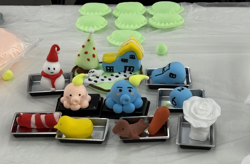活动现场,同学们以桌为单位分组围坐,在轻松愉悦的氛围中开启黏土创作之旅。指导教学组志愿者凭借扎实的手工功底和耐心细致的讲解,从黏土揉捏、搓圆、压扁等基础技法,到冬至主题元素的造型设计与色彩搭配技巧,逐一拆解创作步骤,手把手指导同学们进行制作。面对大家提出的各类问题,志愿者们耐心答疑解惑,结合自身经验分享创意灵感,鼓励同学们大胆发挥想象。在志愿者的悉心引导下,一块块普通的黏土经同学们指尖翻转塑形,逐渐化作憨态可掬的冬至饺子、圆润可爱的汤圆、造型各异的雪人等富有节气特色的作品,现场创意频出,协作氛围愈发浓厚。