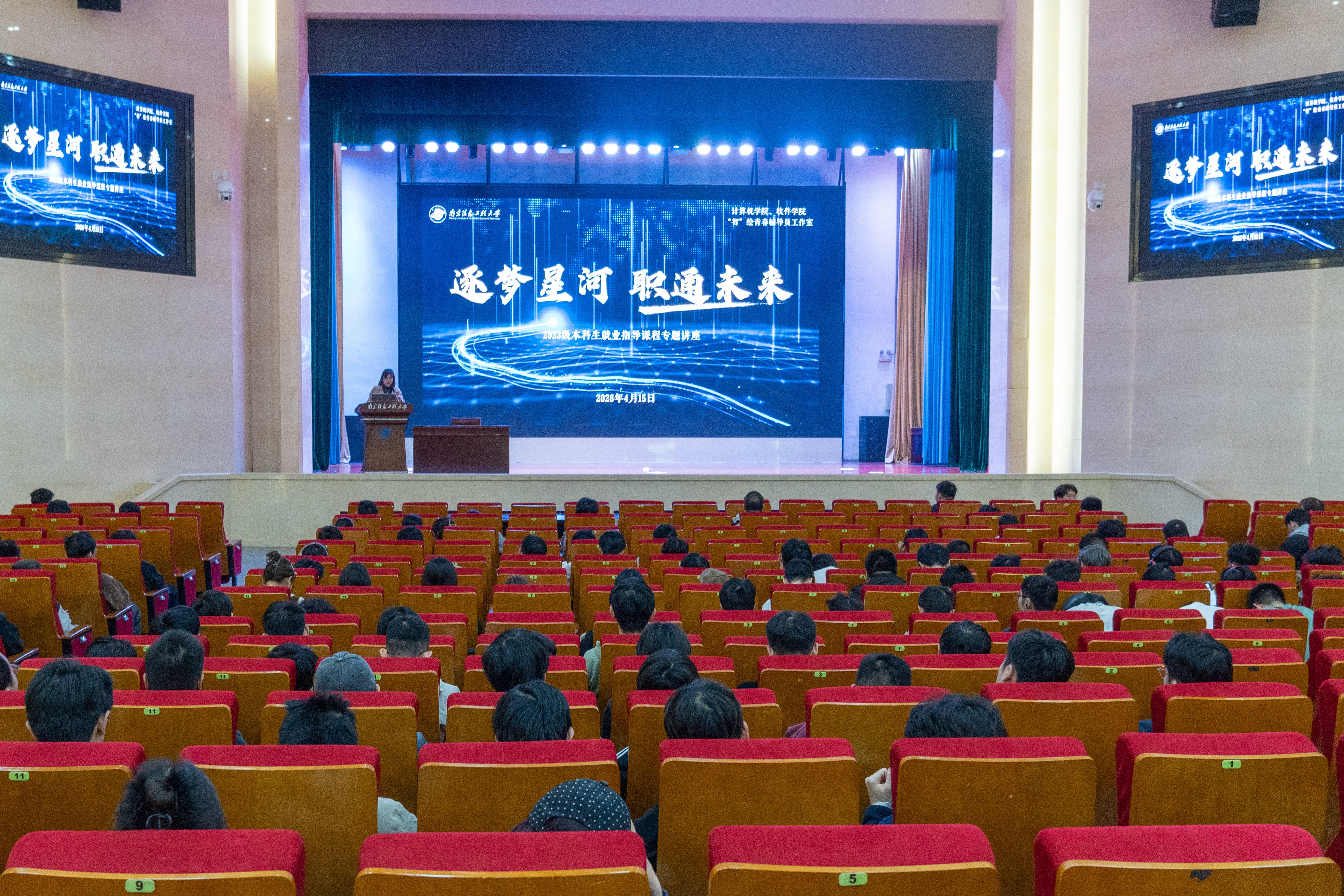 为帮助大三学生明晰行业趋势、提升求职实战能力,扎实推进就业指导工作,4月15日下午,计算机学院、软件学院在风云剧场举办以“从校园到职场——破解IT名企求职通关秘籍”为主题的《就业指导》实践课程专题讲座。本次讲座由学生工作办公室主任张学会主持,特邀亚信科技智能体互联网创新中心总经理袁志勇先生、 亚信科技HRC招聘专家张洪伟先生担任主讲人,全体大三学生到场聆听,参与互动。